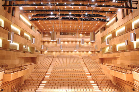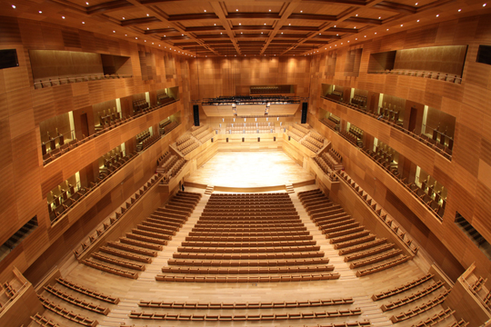 La sala sinfónica es un espacio que representa la unión de la belleza y la eficacia. Cubierta de madera de roble, cuya acústica ha sido estudiada en colaboración con el internacionalmente reconocido ingeniero acústico, el Sr. Yaying Xu.