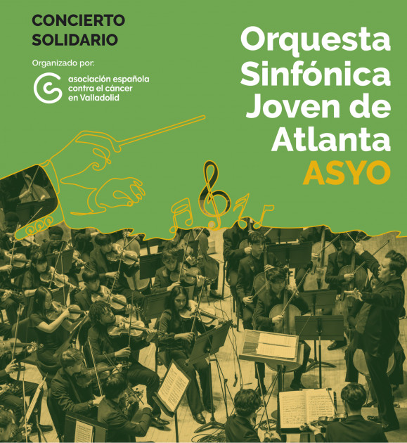 CONCIERTO SOLIDARIO A BENEFICIO DE LA ASOCIACIÓN ESPAÑOLA CONTRA EL CÁNCER EN VALLADOLID. SÚMATE A NUESTRO OBJETIVO DE ALCANZAR EL 70% DE SUPERVIVENCIA EN 2030. TU CONTRIBUCIÓN NOS PERMITE SEGUIR APOSTANDO POR LA INVESTIGACIÓN Y OFRECER UNA ATENCIÓN PSICOLÓGICA Y SOCIAL GRATUITA A LAS PERSONAS CON CÁNCER Y SU ENTORNO.